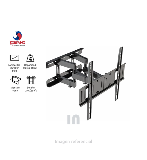 Rack para TV tipo pantógrafo se adapta para TVS planos y curvos de “32 a 65” pulgadas, soporta hasta 40 Kg / 88LBS, Koreakno.