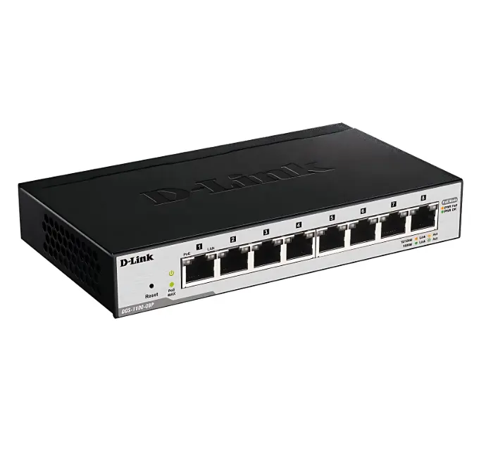 El Switch D-Link DGS-1100-08P es la solución ideal para redes que requieren alto rendimiento y alimentación PoE en un solo equipo. Con 8 puertos Gigabit Ethernet, permite conectar y administrar dispositivos como cámaras IP, puntos de acceso, teléfonos VoIP y equipos de red, garantizando una transmisión de datos rápida, estable y segura a nivel Capa 2.