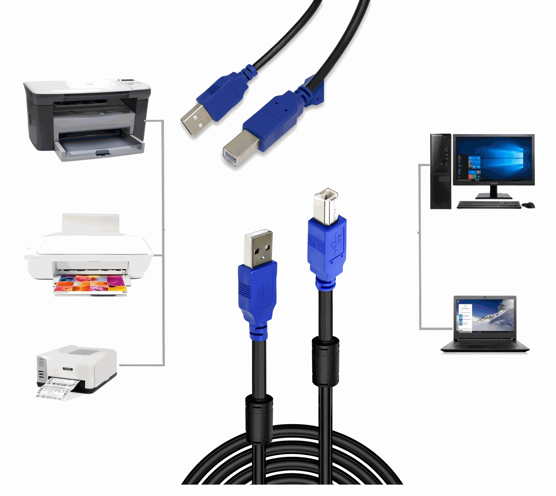 - Longitud: Perfecto para oficinas, talleres o entornos donde se requiere mayor distancia entre el equipo y la impresora.