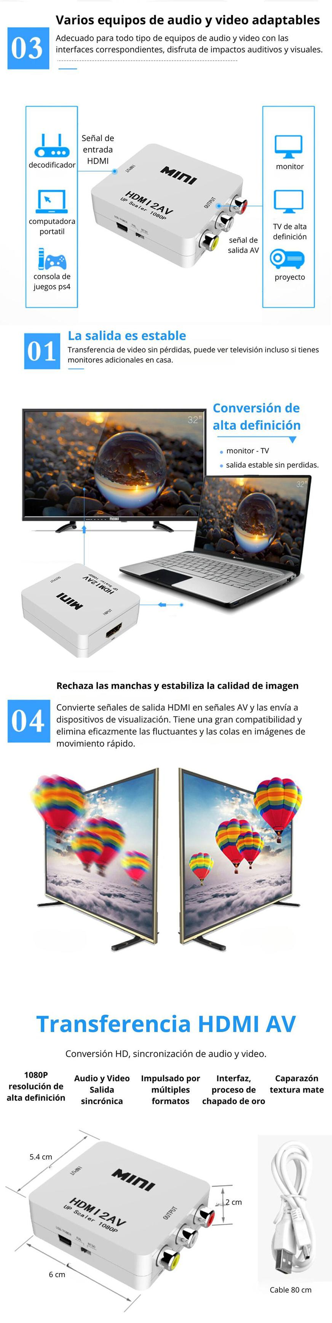 MINI CONVERTIDOR RCA A HDMI, ADAPTADOR HDMI2 V2HDMI TV UP SCALER 1080P.