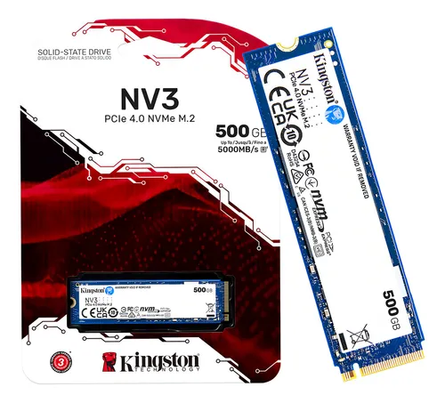 Unidad en estado solido Kingston 500GB NV3 PCIe 4.0 NVMe M.2 SSD.